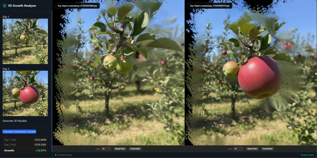 - By filtering out the faint "noise" splats (using an opacity threshold) and keeping only the solid ones, we can calculate the volume of a specific organ or growth.
